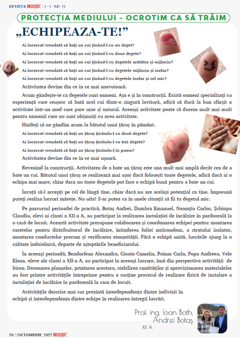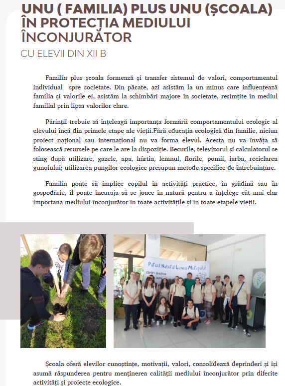 Continuarea activității s-a realizat prin participarea elevilor din grupul țintă, la diferite activități, specifice calificărilor Tehnicean desenator pentru construcții și instalații și Tehnicean ecolog și protecția calității mediului. Printre aceste activități amintim: proiecte și concursuri despre protejarea mediului; participarea în proiectul ERASMUS+ Poarta spre integrarea pe piața muncii; participarea la Olimpiade naționale, conform calificărilor din cadrul proiectului POCU.