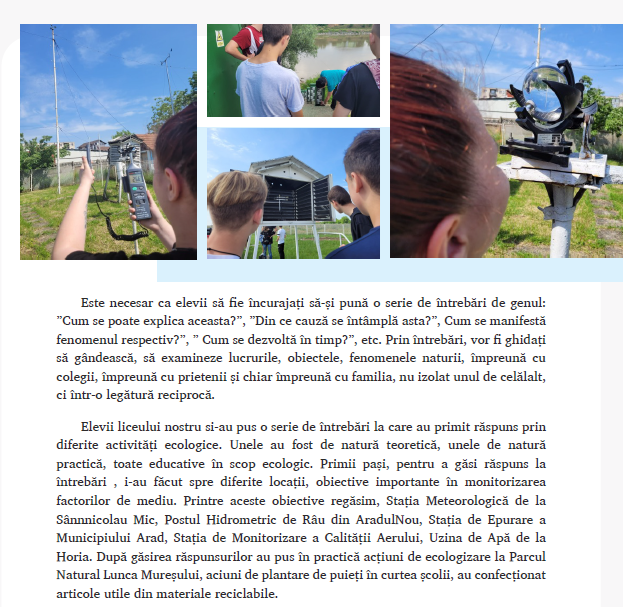 Denumirea liceului: Liceul Tehnologic de Construcții și Protecția Mediului Arad, Loc. Arad, Jud. Arad